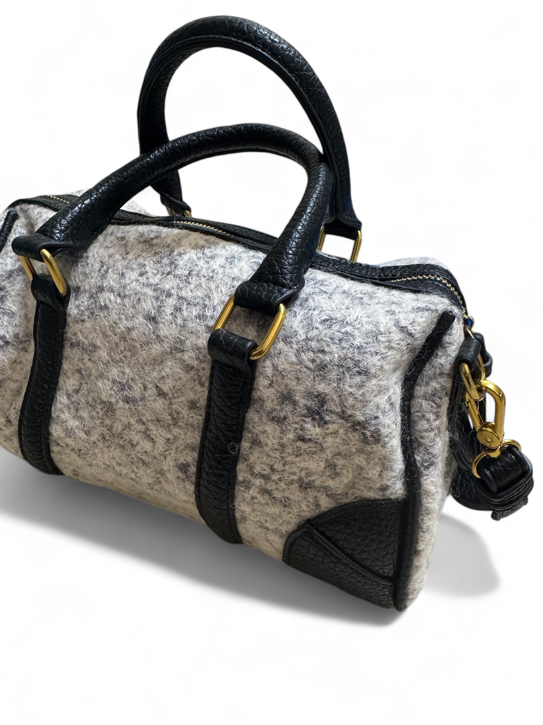 Borsa in lana bouclè,con tracolla in pelle martellata e manici,super capiente e comoda
