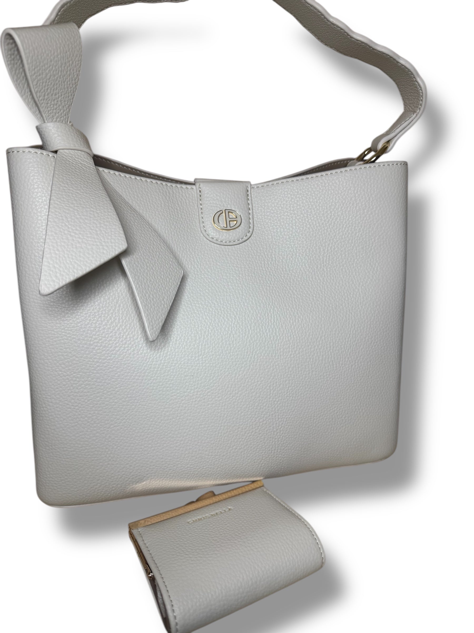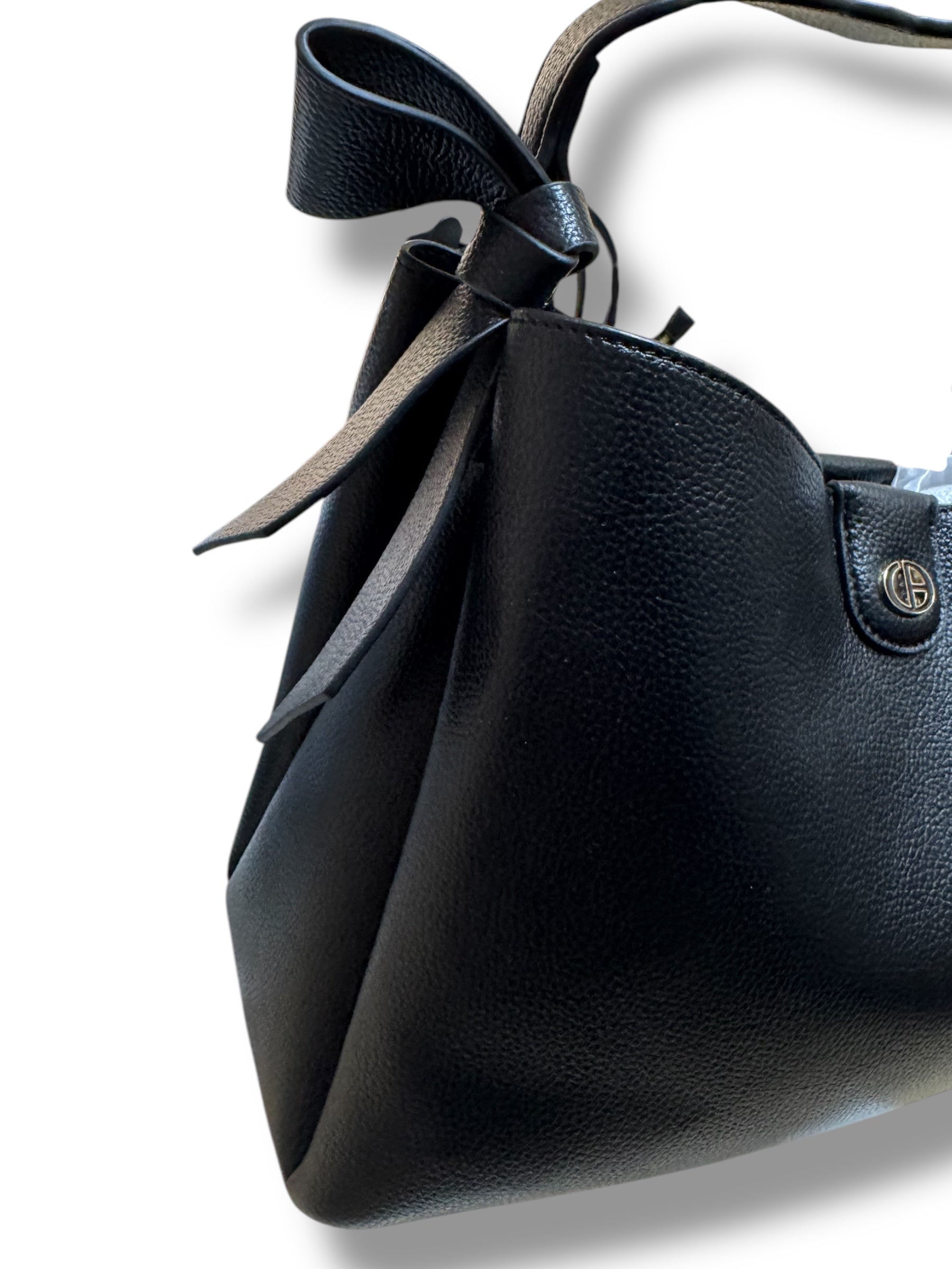 La borsa a mano Emy similpelle top quality dotata di diversi scomparti con chiusura a zip e non,in abbinamento con porta monete, con fiocco sul lato sinistro è ideale per un look sofisticato. Perfetta per ogni occasione, con un design raffinato e dettagli curati.