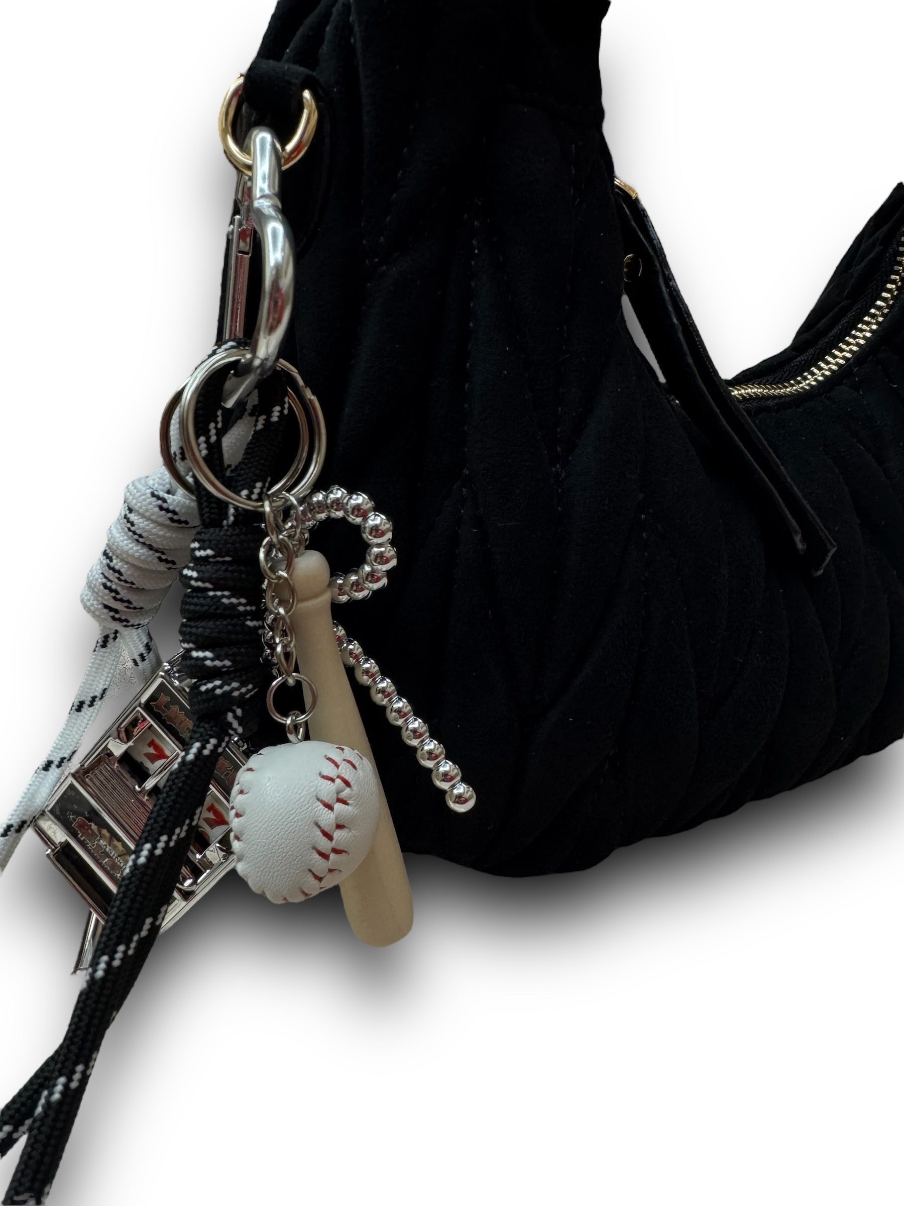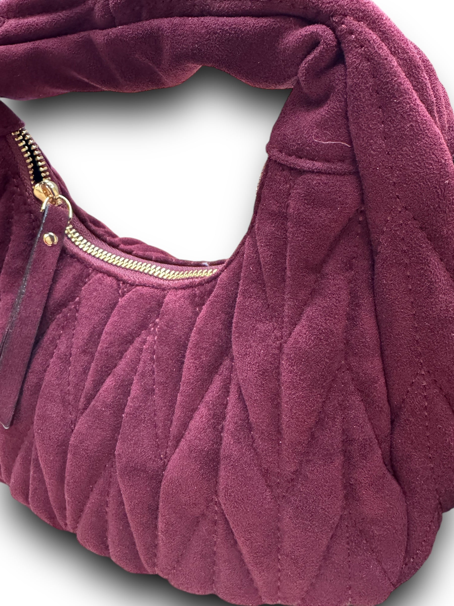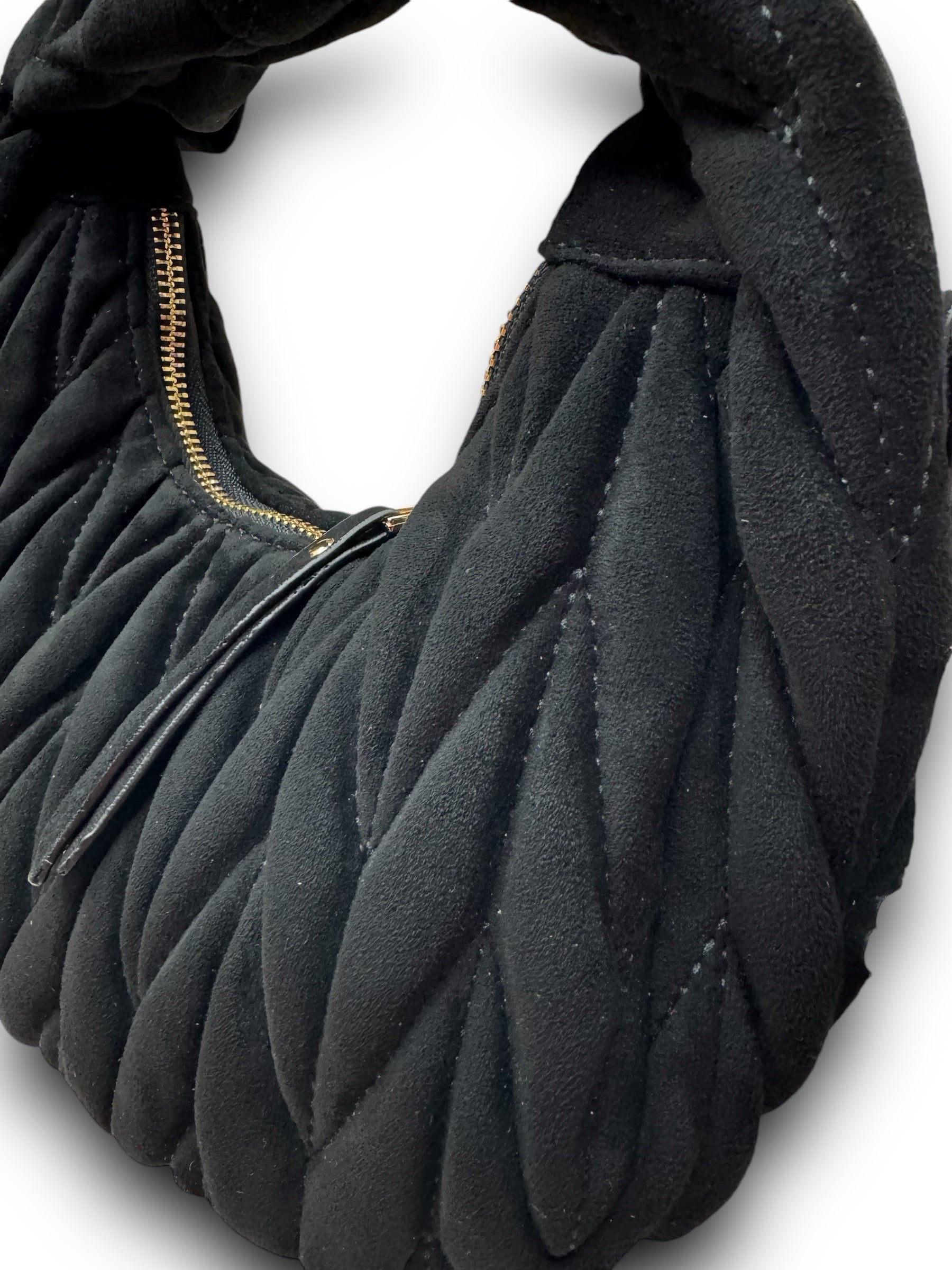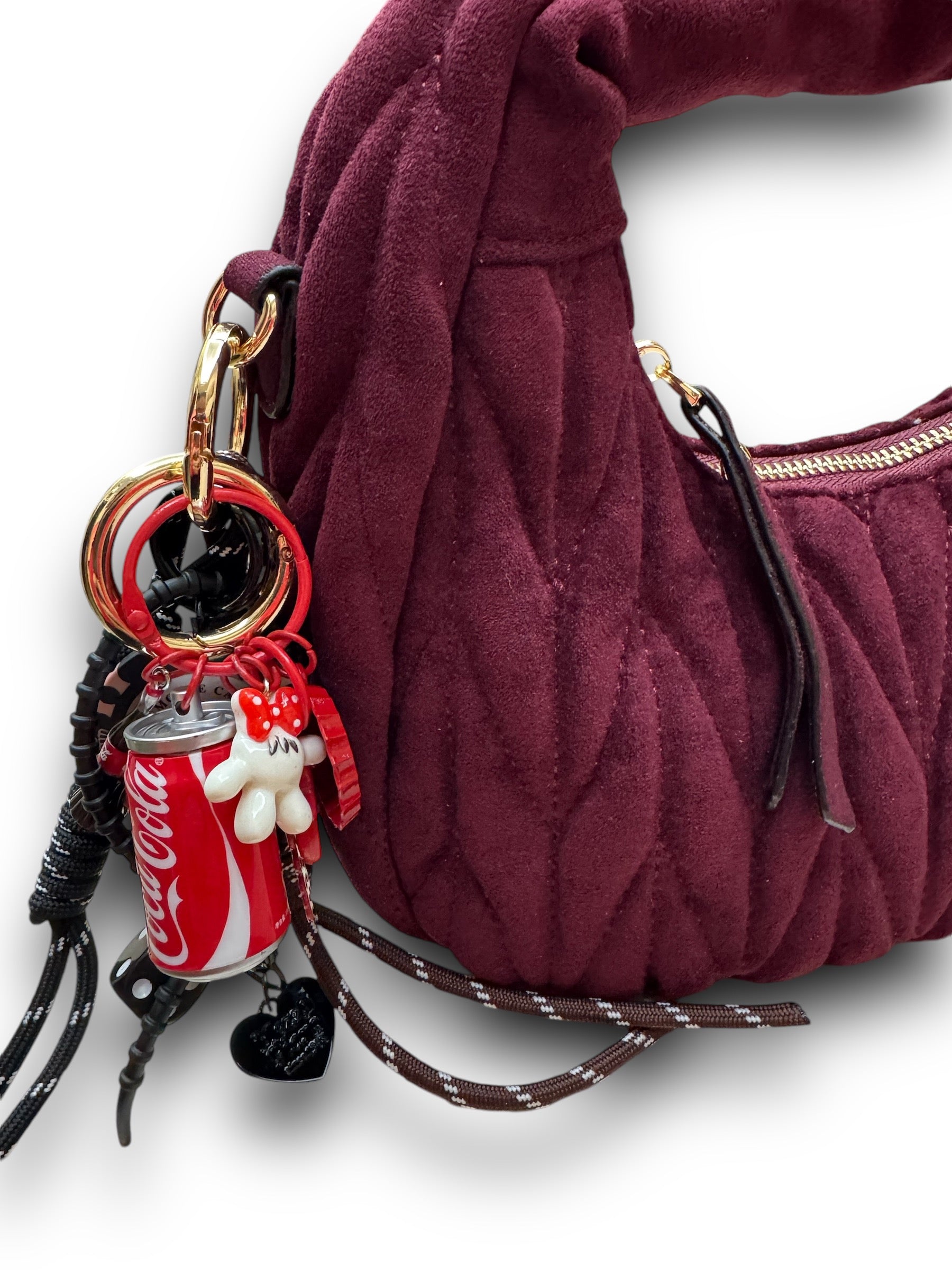 La borsa Kelly presente una lavorazione geometrica trapuntata,chiusura con zip oro,manico rigido e taschino interno con zip gli charms non sono compresi