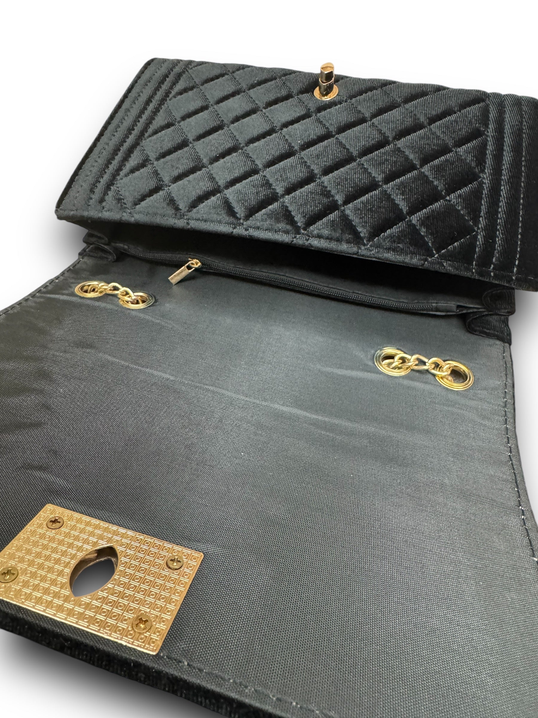 La nuova elegante borsa a tracolla trapuntata effetto velluto con catena. Colpisce per le sue dimensioni e lo stile che da a tutti i vostri outfit. Gli oggetti di valore più piccoli possono essere riposti nello scomparto interno con cerniera.