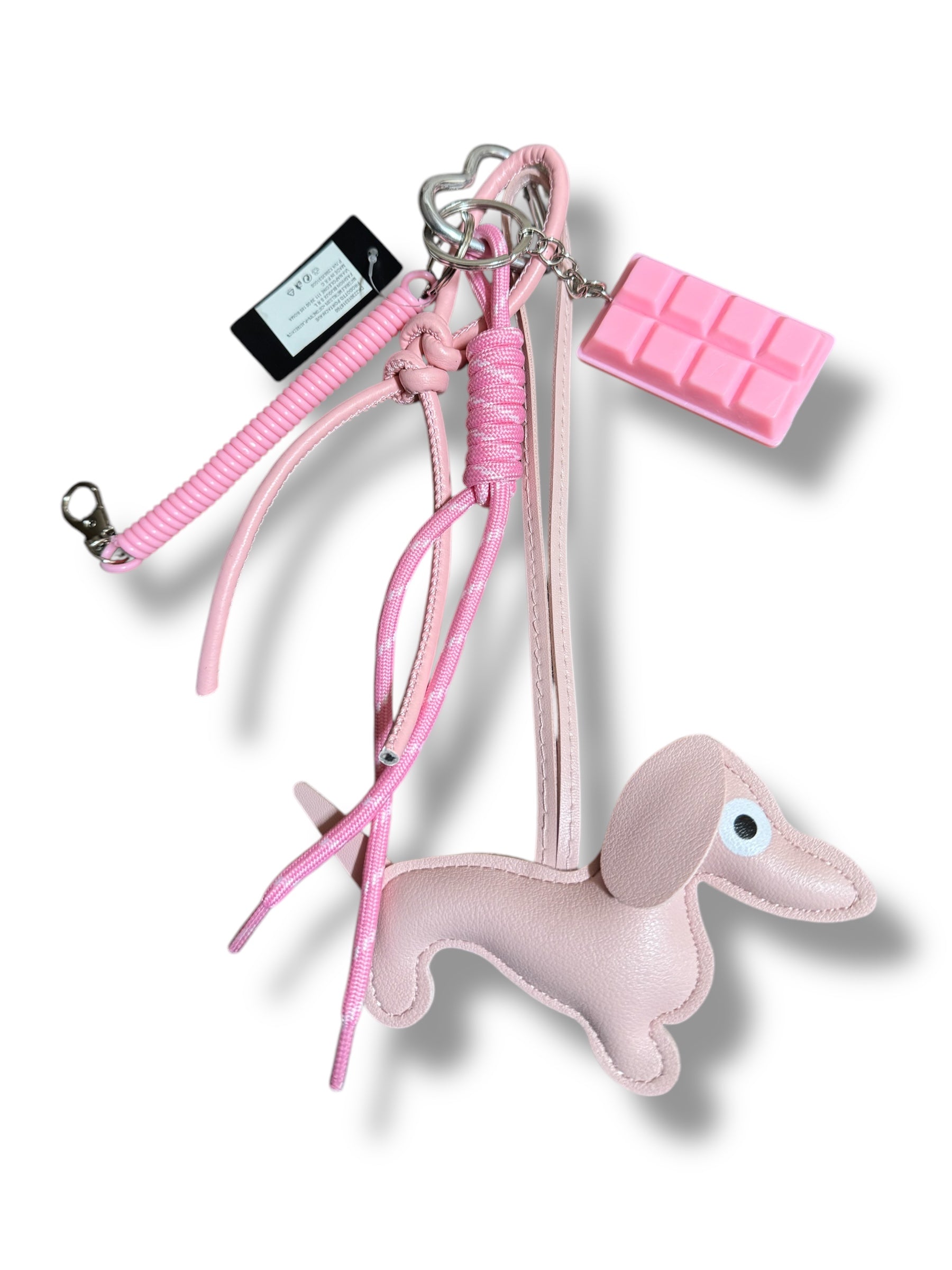 Composto da: bassotto rosa,pezzo di cioccolato rosa,cordino rosa