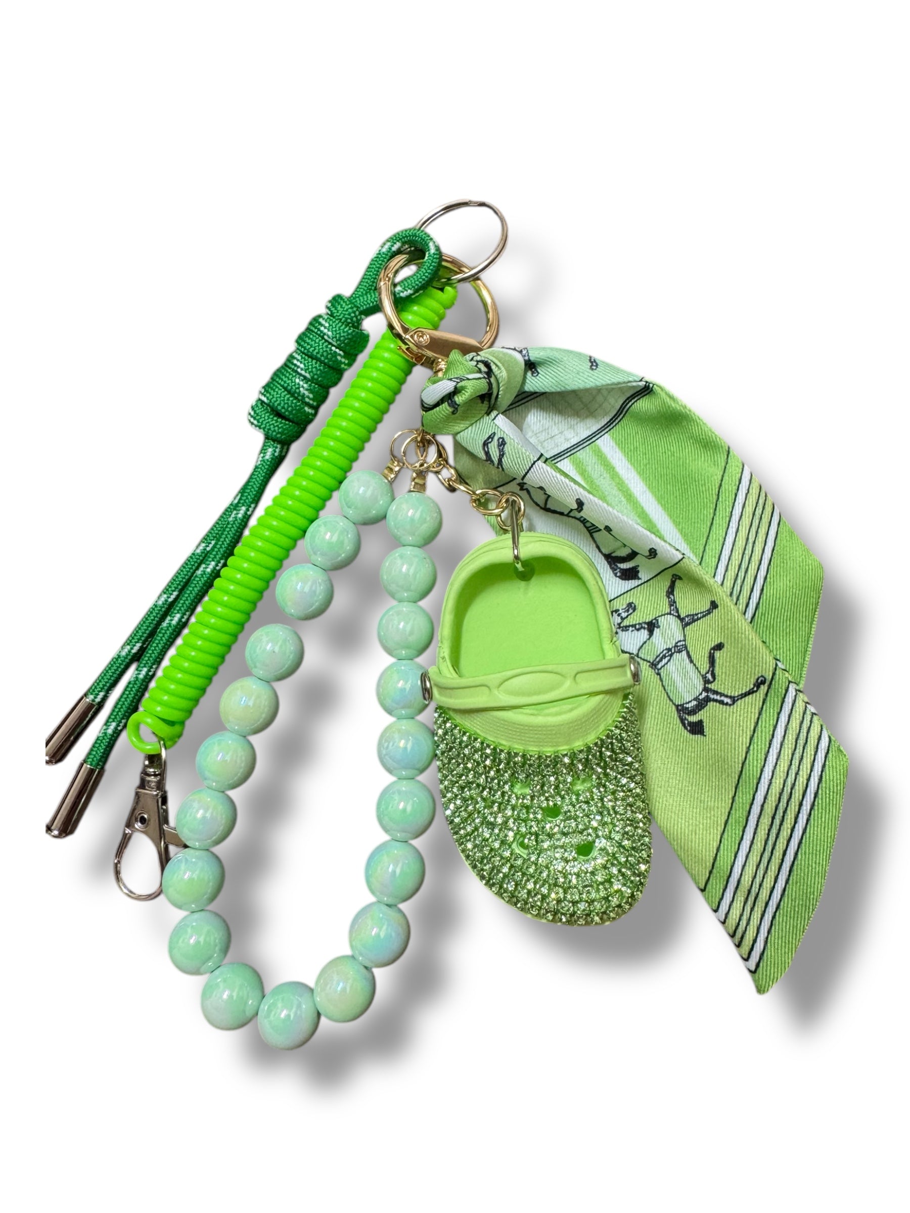 Charm composto da: ciabattina con brillantini,bracciale foulard e corde.