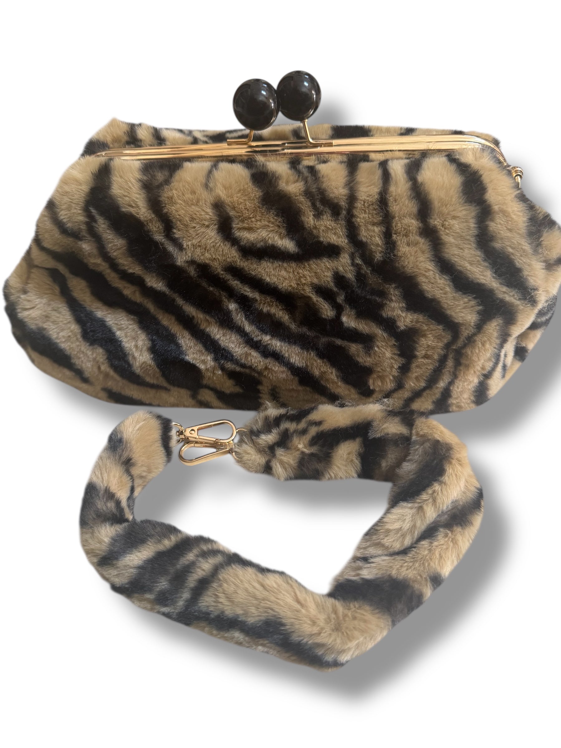 Cluch a mano morbida con chiusura a scatto. La borsa è dotata di una tracolla oro removibile. Perfetta per aggiungere un tocco di originalità ed eleganza a qualsiasi outfit, questa borsa è ideale per chi desidera un accessorio unico e accattivante.