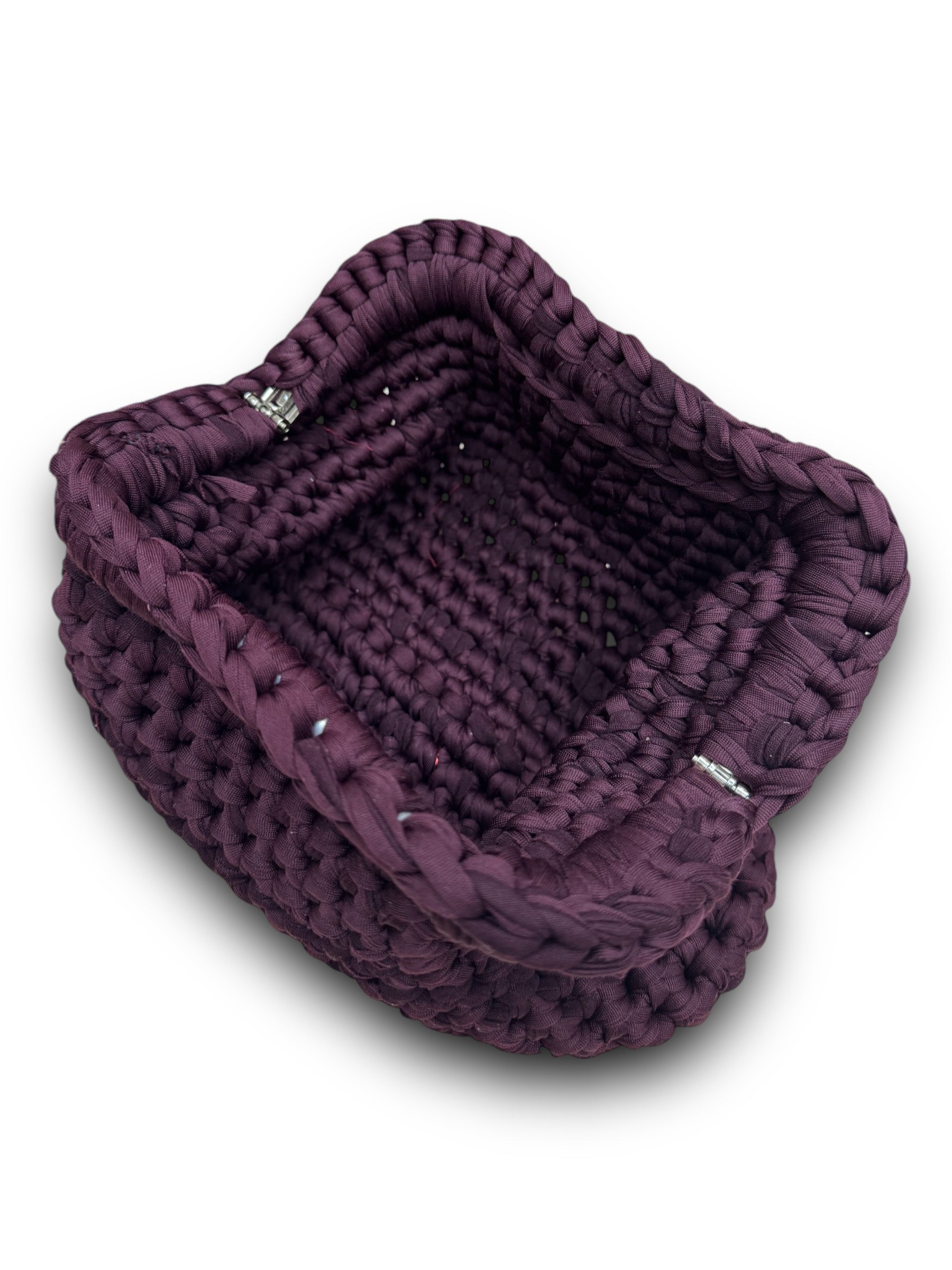 Pochette realizzata a mano in fettuccia e chiusura rettangolare a scatto.