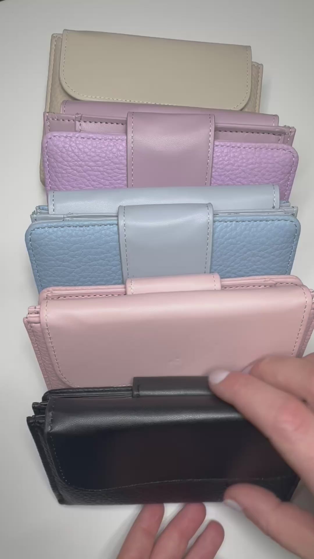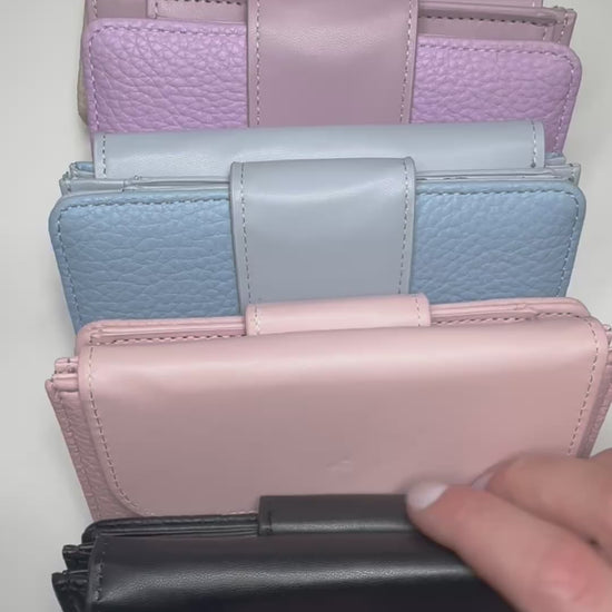 Il portafoglio KIMBERLY ha un design elegante e funzionale. Dispone di 10 scompartimenti per tessere, una tasca per le banconote e un portamonete con chiusura con bottone, che garantisce sicurezza di monete e piccoli oggetti.