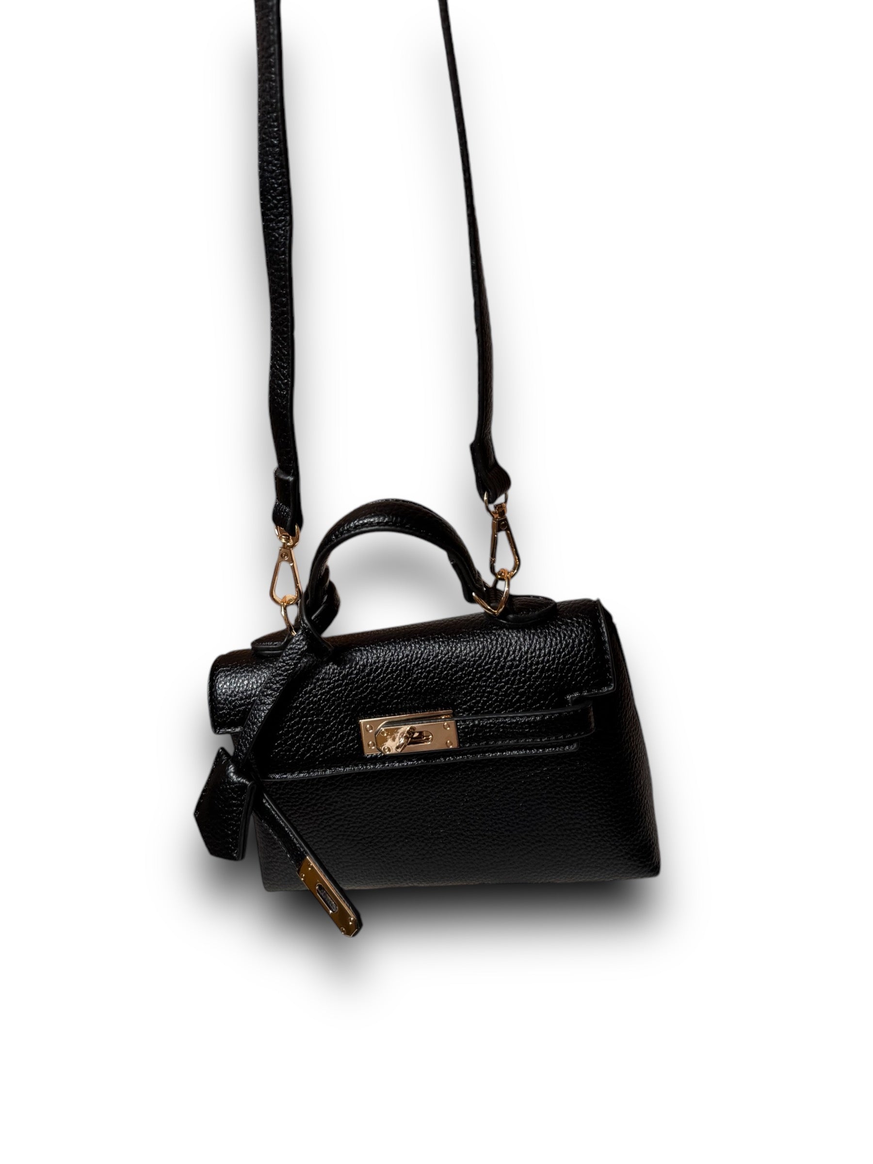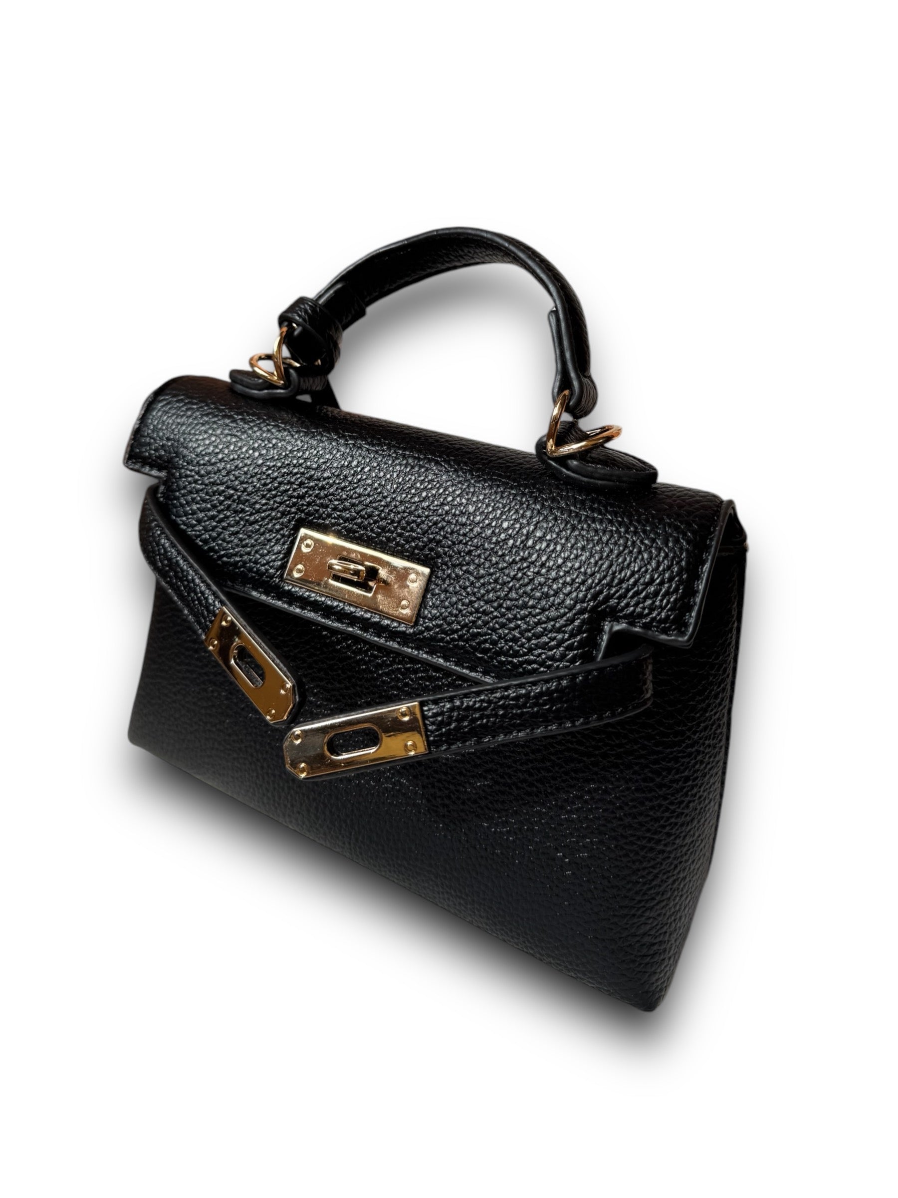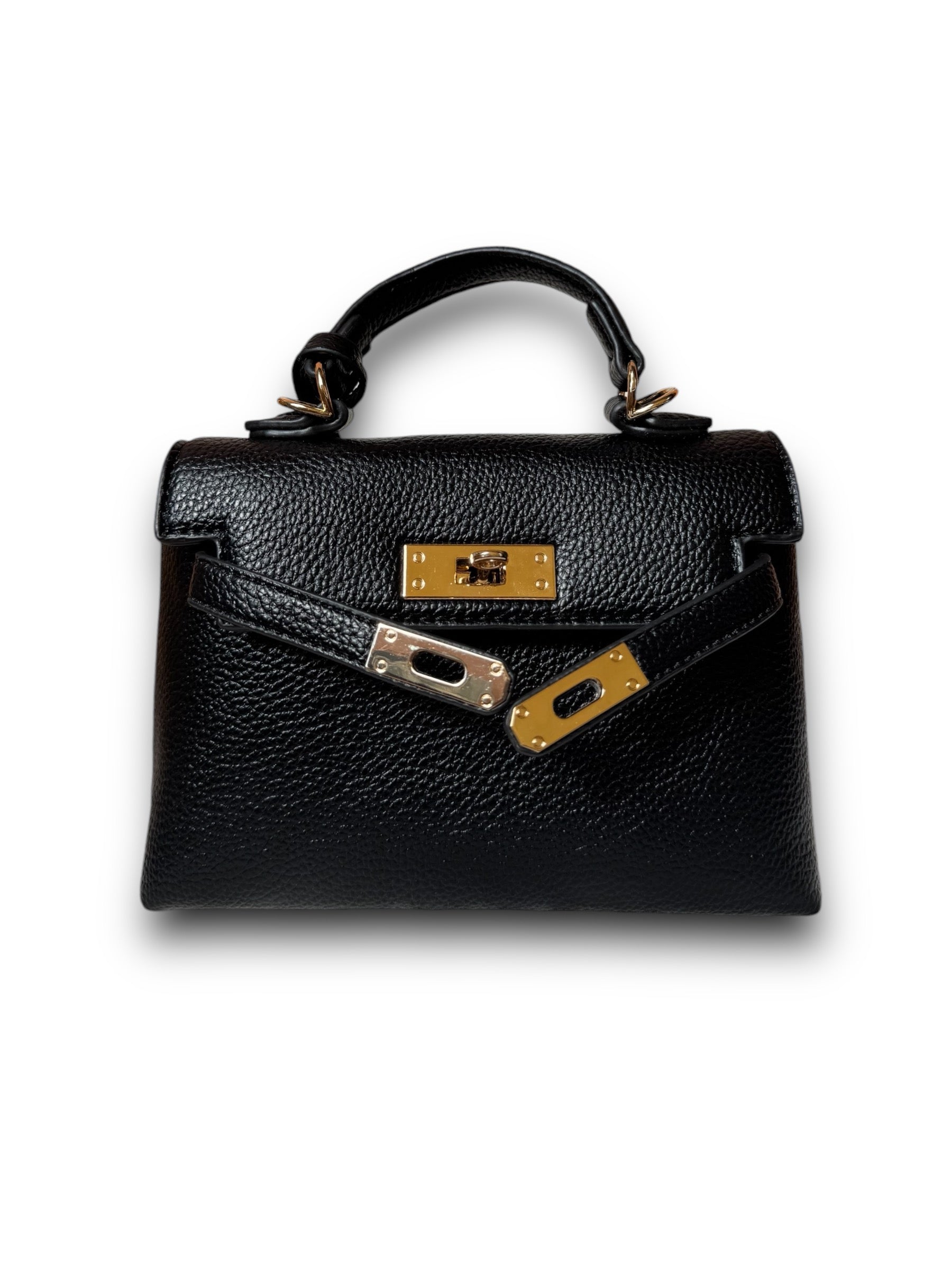 Borsa mini size in ecopelle. Rifiniture in oro ,con manico,tracolla removibile e regolabile.